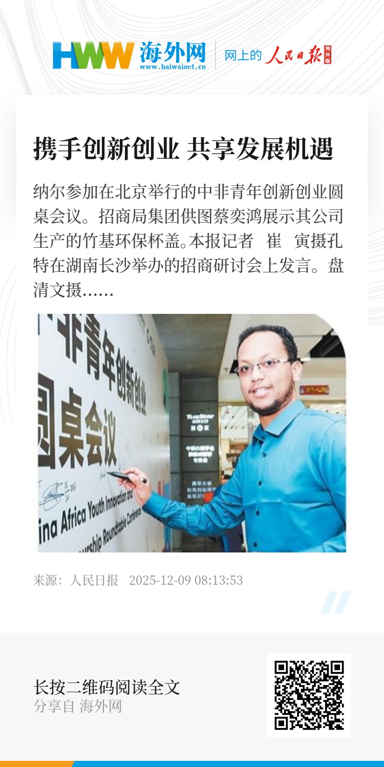 “目前我们的团队有55名成员,我与一位在中国结识的埃塞俄比亚朋友共同担任公司合伙人。”纳尔表示,创业过程中,他非常注重与中国伙伴的合作。2022年,纳尔在吉布提参加了中国企业主办的非洲青年创新创业中心首期“数字创新和跨境电商”训练营。“每次参与有关创业分享活动,我都会跟来自中国的伙伴交流想法、了解中国最新的发展趋势。”纳尔说,近年来,中国接连举办中非青年创新创业大赛、非洲青年创新创业计划等活动,提供创业支持、教育培训等机会,为非洲青年打下更扎实的创业基础。“年轻人是非洲的未来,希望更多非洲青年从在中国的学习经历中获得灵感与经验,将更多创新成果介绍到非洲,推动非洲大陆发展。”