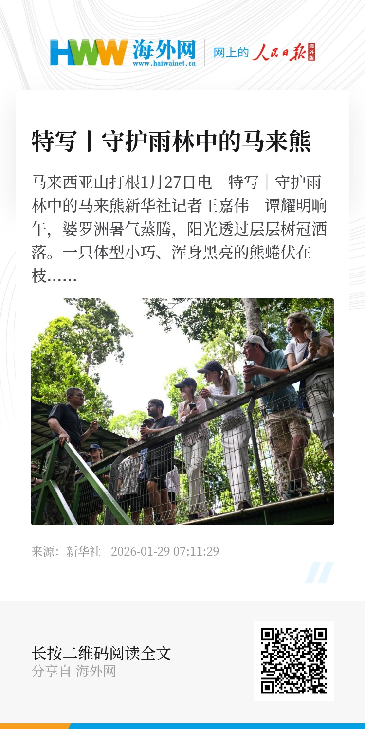 正因其独特的生物属性、保护意义与生态价值,马来熊近年来逐渐走进公众视野。马来西亚将马来熊选为“2026马来西亚旅游年”的吉祥物,希望向外界展示该国丰富的生物多样性,并提升公众对野生动物保护的关注。