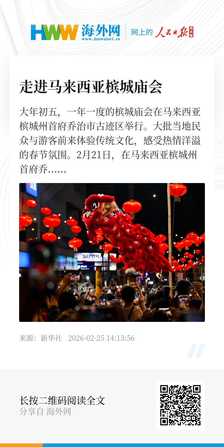 2月21日,在马来西亚槟城州首府乔治市,人们参加庙会活动。新华社发(张纹综摄)