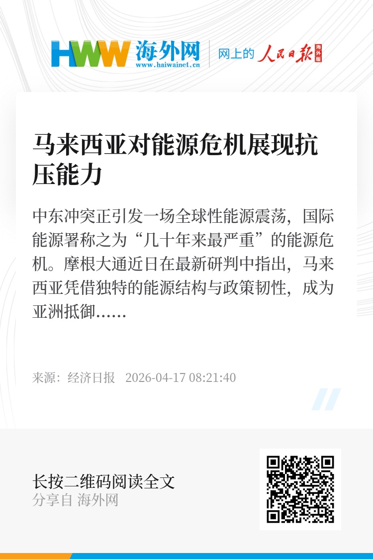 不过,市场人士也分析认为,由于地缘政治不确定性仍存,如果供应链持续受扰,全球增长将面临更大压力。股市层面,消费品、公用事业等行业将直接受冲击,危机或蔓延至金融、科技、医疗等领域。马来西亚央行行长也警告称,地缘紧张将推高油价与运输成本,抬升生产物流成本、加剧通胀并扰乱贸易,或引发金融市场避险情绪、收紧信贷,进而影响增长。对马来西亚而言,危机或加速能源转型,推动政府与企业加大可再生能源投资,降低化石燃料出口依赖。(经济日报记者 朱 旌)